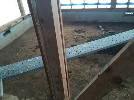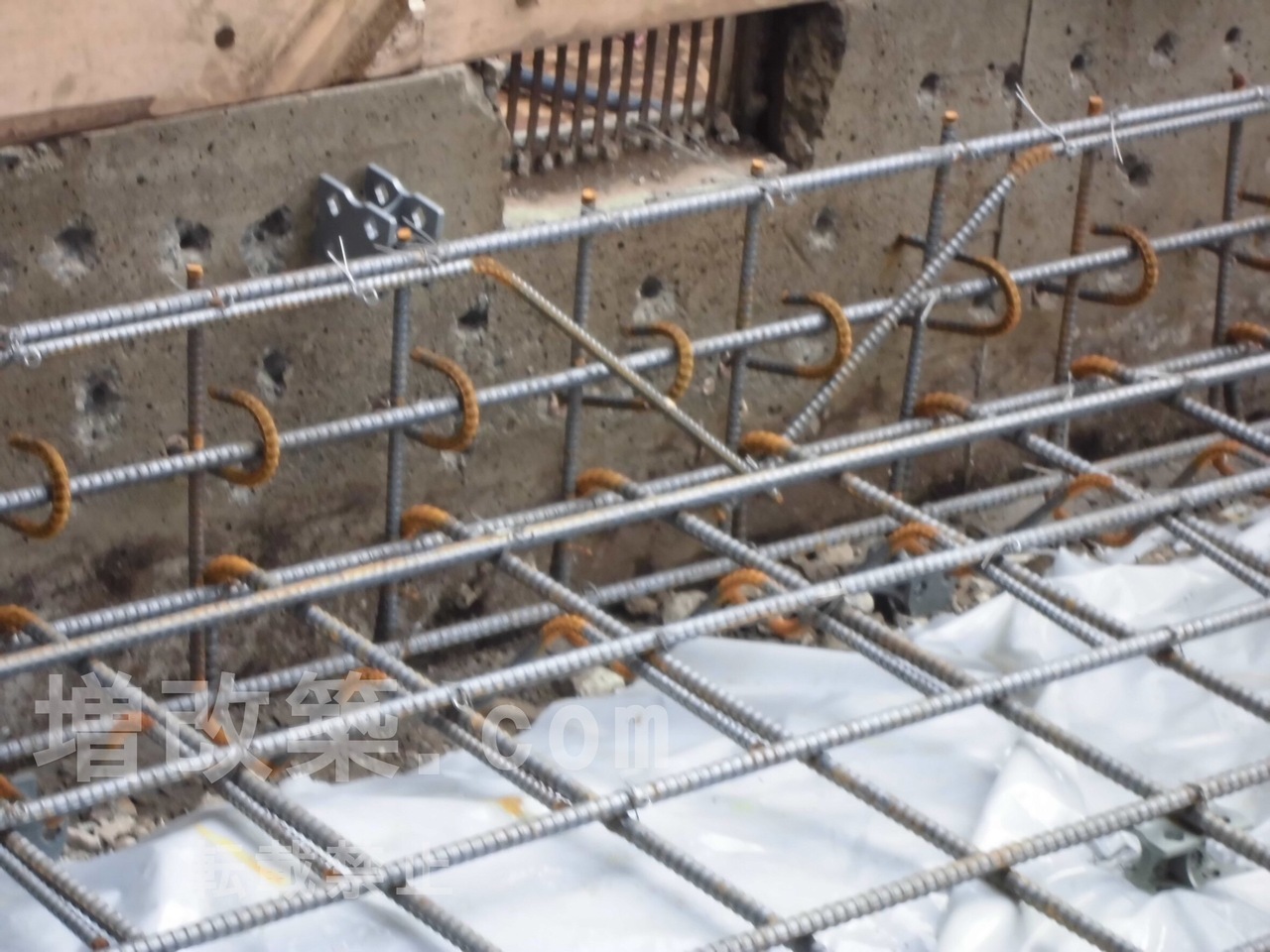 既存の布基礎部分(立ち上がり部)に一定のピッチで孔を開け(ホールインアンカー)ケミカルアンカーを打ち、接着剤を充填後ボルトを締め(あと施工アンカーとも呼ばれています)既存基礎との一体化を図る工程です。