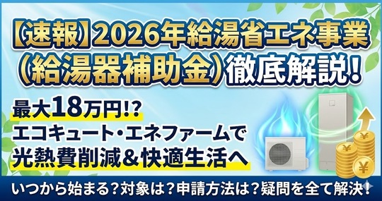 【速報】給湯器交換で最大17万円!『給湯省エネ2026』決定。電気代高騰の救世主となるか?
