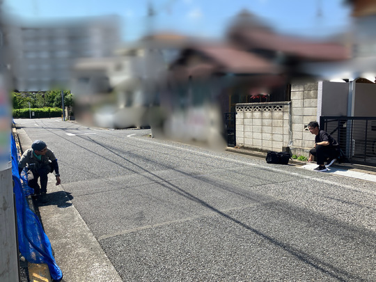 最後に公図と照合し、境界杭の位置を簡易測量。越境やブロック塀のはみ出しを確認しておくことで、万が一のトラブルを未然に防ぎ、近隣説明もスムーズに進みます。