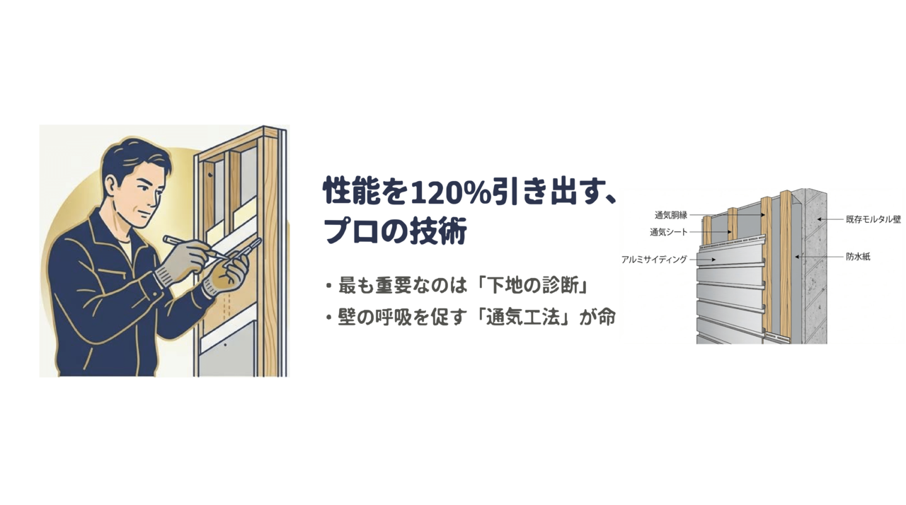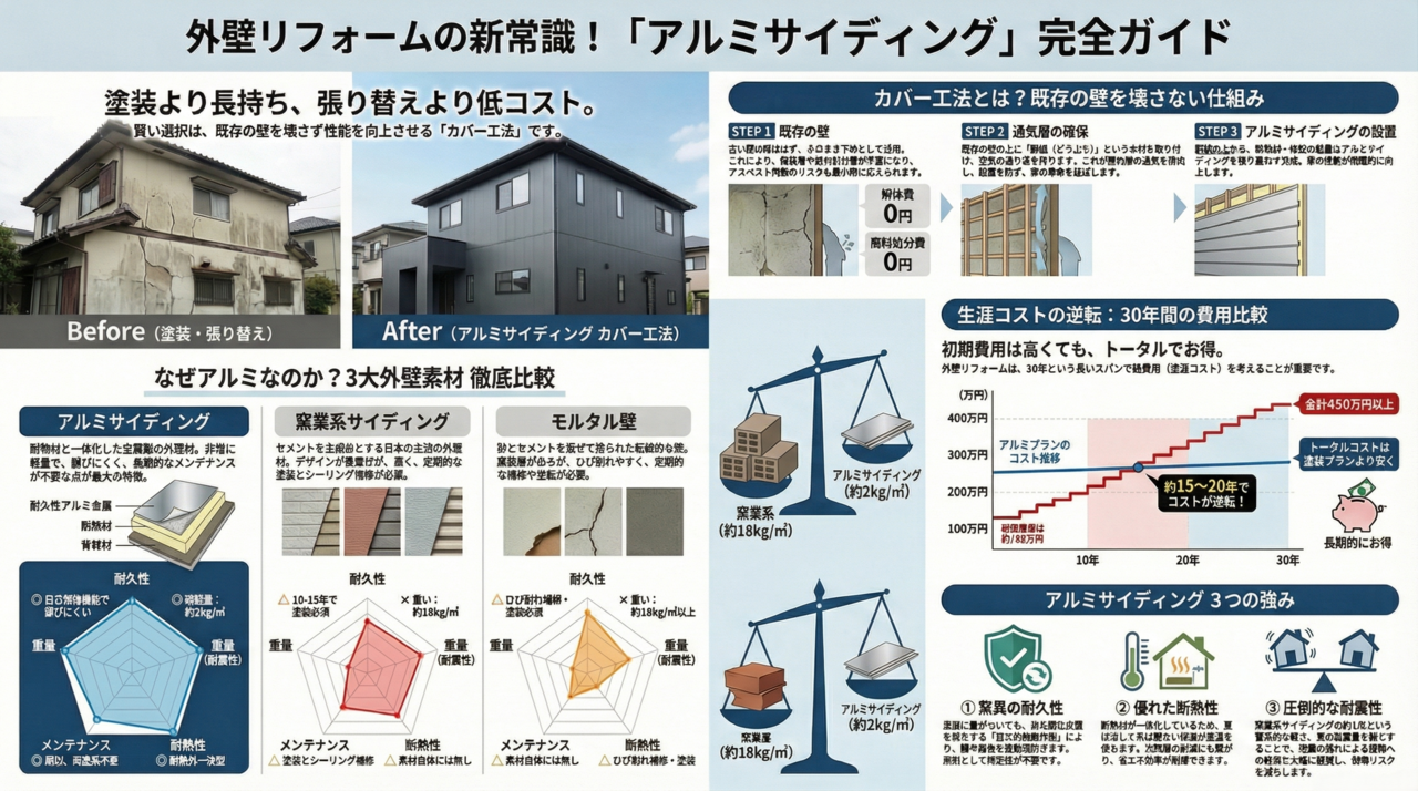 ここでも、アルミサイディング カバー工法の合理性が際立ちます。