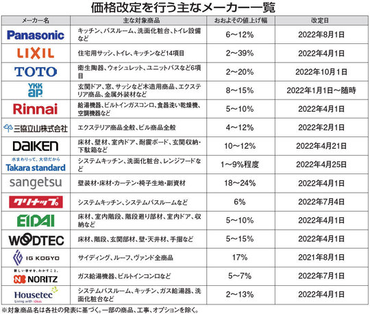 おなじく外装建材メーカー大手のケイミューはすでに、9月1日から一律20%の値上げが実施されております。