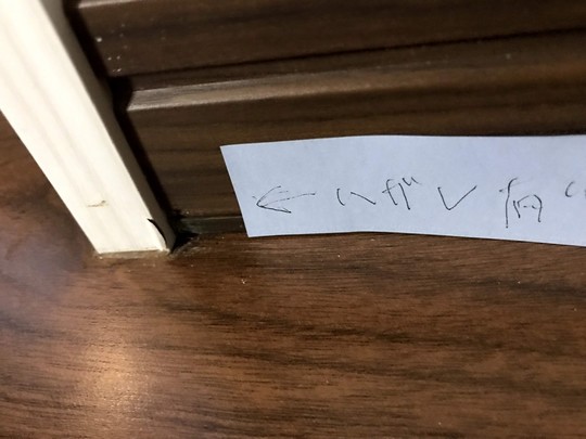 建売住宅ではMDFを使用していることが多いです。施工の際に、頭径が1mm程度のフィニッシュ釘で固定しますが、下手な大工さんが使用すると頭が目立ってしまったり飛び出たりしているので注意して確認しましょう。巾木やクロスは時間が経つと自然に隙間が出来たりしますので、アフターフォローがある売主(事業主)の場合隙間が出来たら修繕してもらえます。前述で説明しましたが、乾燥収縮を行い隙間が出来るケースが多々ありますので、しばらく様子をみてまとめて補修してもらうのがよいと思います。