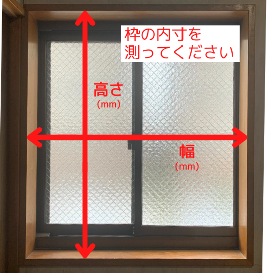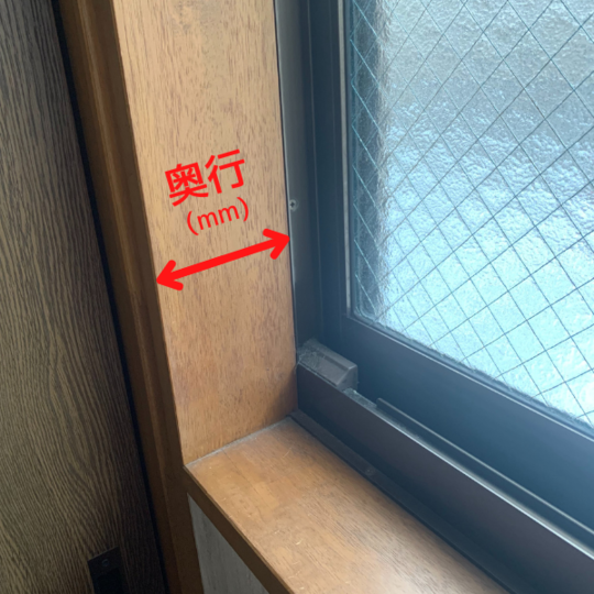 ①サッシを取り付けたい窓の木枠の内寸法:幅・高さ・奥行