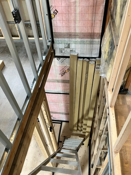 • 階段周り: 断熱層の厚みが確保しにくい階段周りの壁には、薄くても性能の高い断熱材を選定し、防湿気密シートの施工をより一層丁寧に行います。