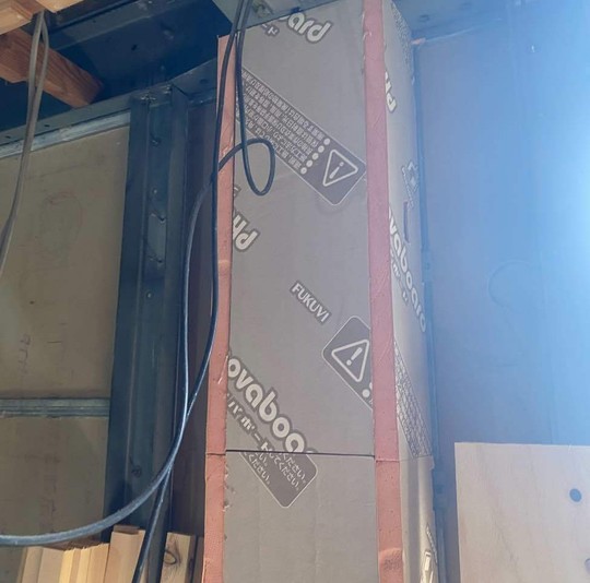 • 柱や梁の被覆に: 高性能フェノールフォームボード「フェノバボード」など、薄くても断熱性が高い板状の断熱材。