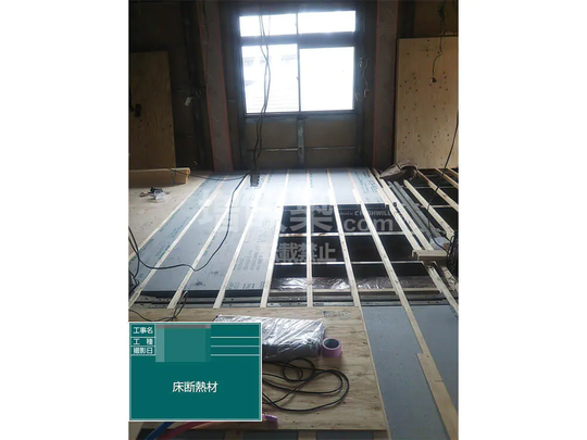 • 課題: 床を支える骨組み(大引)が鋼製のため、床全体が巨大な熱橋となっている。