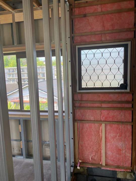 3. 防湿気密シートの施工: 最後に、壁全体の室内側に防湿気密シートを連続して張り、壁内結露を防ぎます。