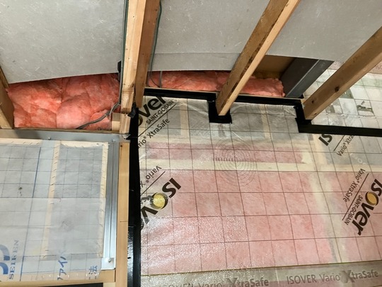 4. 気密処理: 最後に、下地合板を張り、その継ぎ目や壁際をすべて気密テープで塞ぎ、床下からの空気の侵入を完全に止めます。