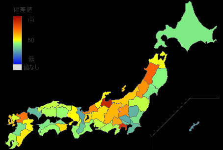 下の図は、人口10万人あたりの、入浴中の心肺停止者数を、都道府県別に、色分けしたものです。色が濃いほど、発生件数が多いことを示しています。