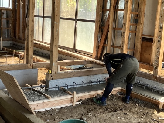 EMコンクリート圧送後に表面を慣らします。自社スタッフの仕事です。