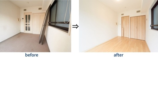 こちらの施工事例では、カーペット敷きだった洋室のフローリングへの張替えを実施。