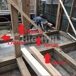 C地点は土台が腐っていました。土台上げ工法には通常外部から基礎を一部ハツリジャッキを刺し込み土台上げする工法が一般的ですが、土台が腐っているため上げらないことがあります。このようなケースで上部躯体を固定しジャッキアップする方法を選択しました。築年数が経過した戸建てのフルリフォームではこのこのケースは多いです。