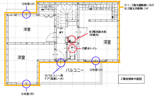 • 必須リフォーム:住宅の省エネ改修(窓やドアの断熱、壁・床・天井の断熱、エコ住宅設備設置)