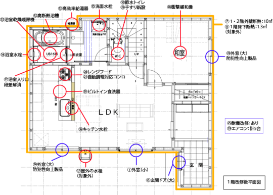 • 任意リフォーム:住宅の子育て対応改修、耐震改修、バリアフリー改修、空気清浄機能・換気機能付きエアコン設置工事等
