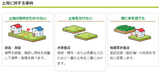 例えば、建物を新たに建築した際には表題登記が必要となるため土地家屋調査士の先生に表題登記の依頼をする必要がありますが、依頼した土地家屋調査士の中には「仕事が遅い」「こちらの意思を汲み取ってくれない」「進捗の連絡がない」など問題があるケースもあり相談があったりもします。このようなお悩みを抱えてしまって相談も専門的な内容な為、相談できる相手がいないことが多いので事情です。このような困った時にも相談できる場所が「境界トラブルオンライン相談サービス」の特徴です。