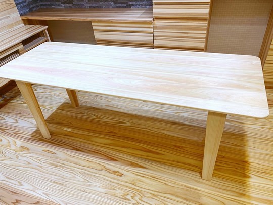 打ち合わせ用のテーブルはヒノキの造作テーブルにしました。トップはウレタン塗装をしました。