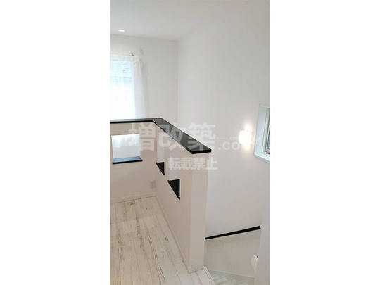 ▲二階へつながる階段は吹き抜けに沿って圧迫感のない設計となっています。