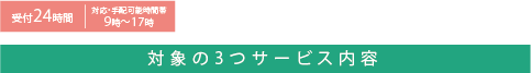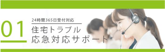 対象の5つの住宅トラブルについて、24時間365日ご相談を受付、無料応急対応サポート(※1)範囲の場合、提携する協力業者と連携し、スタッフの訪問調整を行います。