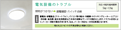 ※1:応急対応とは作業員1名による、特殊工具・部品を必要としない30分以内の作業のことをいいます。