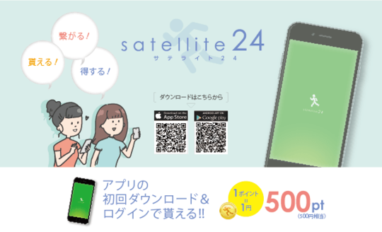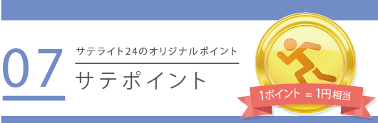 サテポイントとは、サテライト24(アプリ)で貯まるオリジナルポイントサービスです。ポイントは、サテライト24から様々なアイテムと交換していただけます。