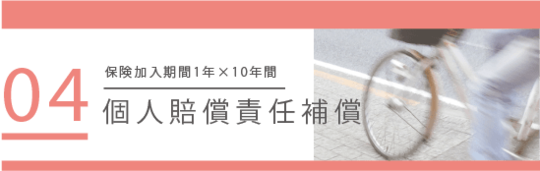 日常生活における国内外で発生した『法律上の損害賠償責任』から加入者ご本人様とご家族の皆様を補償サポートいたします。