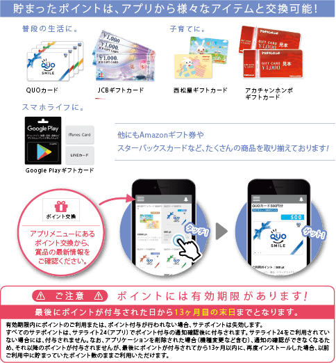 ※ポイントサービスの概要やポイント付与対象・ポイントで交換できる賞品、ポイントにより受けられる割引等は、予告なく変更される場合があります。最新の情報はサテライト24からご確認ください。