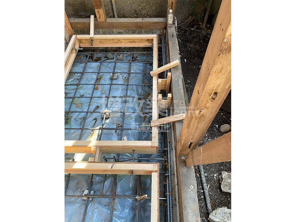 ▲新たな間仕切り壁が新設される箇所へは、新規での基礎を立ち上げなければなりません。ベース配筋と立ち上がりもしっかりと緊結していきます。