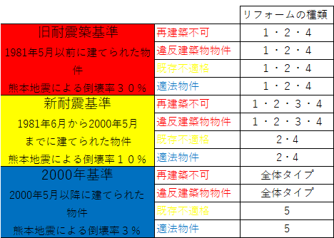 そして、この5種類のリフォームパターンに当てはめるにあたって、やはり大きな目安は建築基準法の改正になります。