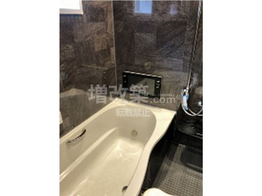 新規浴室はリクシル 16161 壁全面をアクセントパネルにする事でモダンな仕上がりに、浴室暖房・TVなどの設置でゆっくり・まったり一日の疲れを取ります。