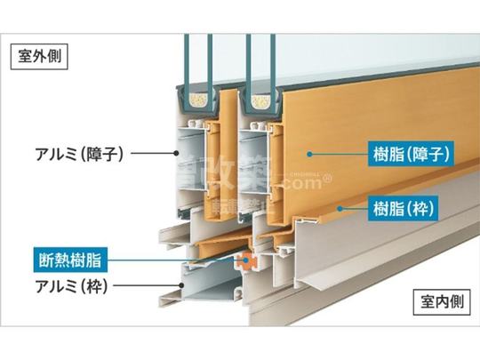 上下枠に断熱樹脂を挟み、より効果的にハイレベルな断熱性能を実現しています。