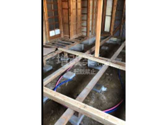床組を全てやり替え、床下には断熱材を入れ床鳴りの原因となる木束も鋼製束を使用がっちりとした床組みに、今回下地を2重貼しその上にフロアー仕上げなので3重貼した断熱性能も上がった床にしました。