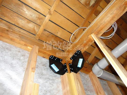外壁までを解体するスケルトンリフォームをさせて頂くにあたり、せっかく梁・柱がむき出しにするのであれば、そこに制震金物を設置させて頂きました。新しい間取り図面をメーカーに提出し、適正な場所を指示頂き、設置いたしました。