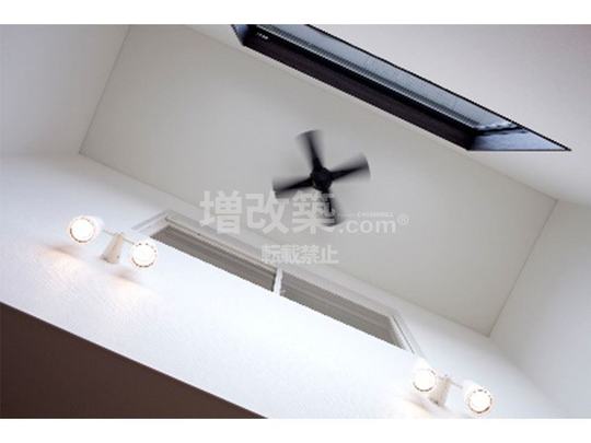 前面道路とLDKが近い為、プライバシーを考え、吹抜けを設けて高窓を設置し、LDKの採光を確保。