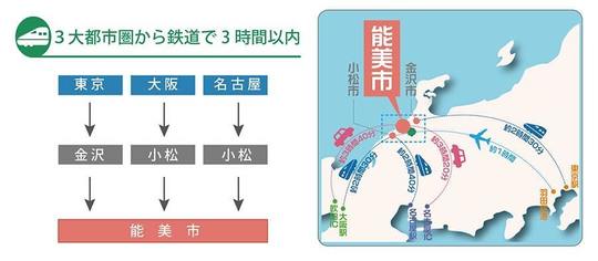 能美市は石川県の南部、加賀平野のほぼ中央に位置しています。県都金沢へは北東約20kmの距離にあり、南には日本海側の拠点「小松空港」がある小松市が隣接しています。