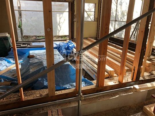 内部スケルトン解体が完了後、1階の外壁を剥がし完全なスケルトン状態とします。