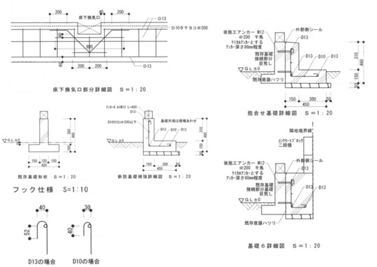 K様の建物は、無筋基礎になることから、抱き合わせ基礎(添え基礎)補強での補強が必要です。