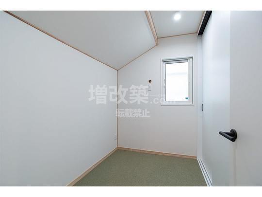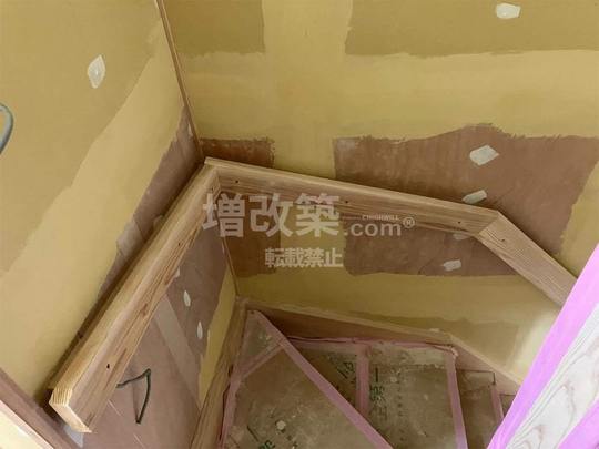 斜め天井部の対応: 斜線が掛かる斜め天井部にも30㎝のセルロースファイバーを充填しました。この部分の断熱は特に重要で、斜め天井の形状に合わせた充填が行われました。この施工により、傾斜部にかかる洗面化粧台などの高さも考慮した間取りが可能となりました。