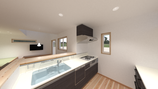 ▲間取り変更後はキッチンの位置を変えて広いリビング空間を確保しました