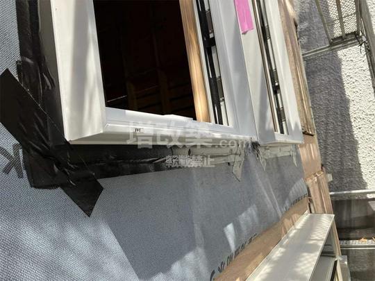 補修作業の重要性: 解体によって生じた外壁の傷みや不均一な部分は、後の仕上げ工程に影響を与えるため、丁寧な補修作業が必要となりました。特に、窓周りは雨水の侵入を防ぐための重要な部分であるため、補修は入念に行われました。
