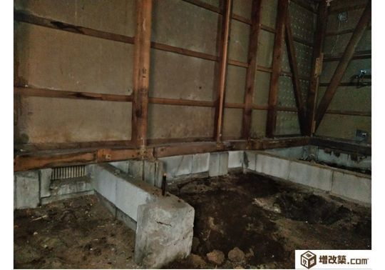 • 無筋基礎かどうか:鉄筋が見当たらない場合、抱き合わせ基礎補強で対応する必要がある。