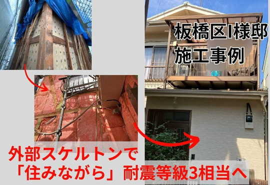 戸建フルリフォームなら「増改築.com®」TOP > 施工事例 > 都道府県で探す > 東京都板橋区 > 施工事例 I様 外部スケルトンで「住みながら」耐震等級3相当へリノベーション