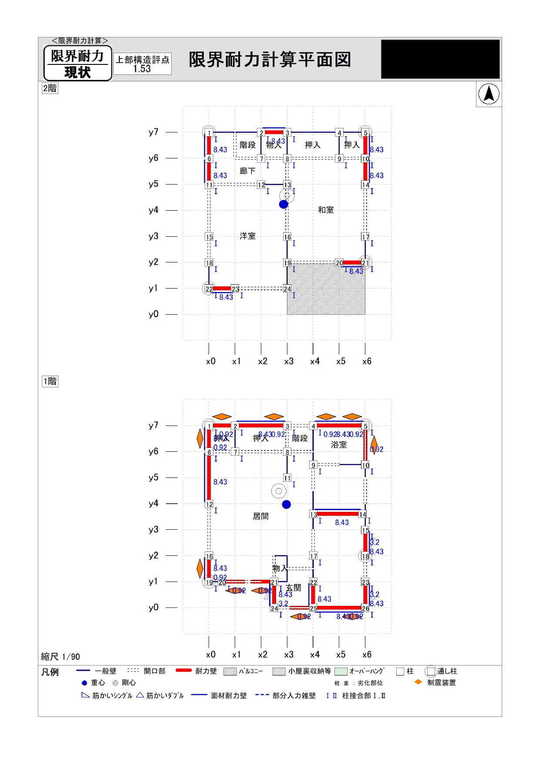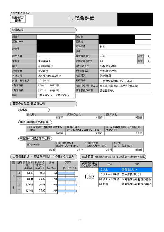 耐震改修構造計算結果 評点「1.53」