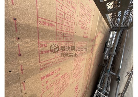 • 耐力壁の外部付加: 構造用面材(ノボパン等)を外側から全周に貼り巡らせ、建物全体をモノコック構造(飛行機のような一体構造)へと進化させました。