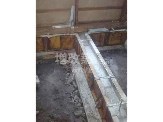 M様の戸建てはブロック基礎であり、このブロック基礎の特性を理解した上での適切な補強方法の選択が求められました。ブロック基礎は、その構造上、耐震性や強度が低いとされています。通常の補強法である両側からの添え基礎補強は、耐震性の向上には有効な方法です。しかし、M様の物件の場合、外側に添え基礎補強を行うと、隣接する土地への越境の問題が発生するため、この方法は採用できませんでした。そこで、新たな補強方法として、内側からの基礎補強を採用しました。