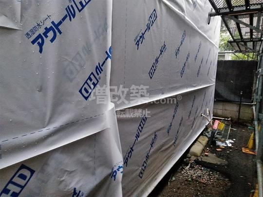 また、防水紙の施工は、外壁の耐久性を確保するための重要な工程です。防水紙は、外部からの雨水や湿気の侵入を防ぐ役割を果たします。M様の住宅では、金属サイディングの下に防水紙を施工し、外壁の防水性を向上させました。この工程も、隣家との距離が狭いため、特別な技術や工夫が必要でした。隣家との見切りを納める際には、美観や防水性を確保するための工夫が必要です。