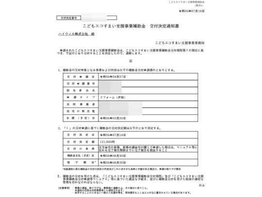 北区M様邸の工事では、国の補助金「こどもエコすまい支援事業」を活用しました。