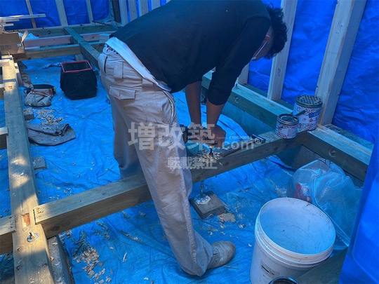 M様の戸建てでは、既存の柱を刻むことで新たな梁を設置しました。この工程は、精密な計算と技術が求められるものであり、施工管理技術者としての高いスキルが必要とされます。刻むとは、柱の一部を削り取り、その部分に梁をはめ込む技術を指します。この技術により、柱と梁がしっかりと結合され、建物全体の強度が向上します。