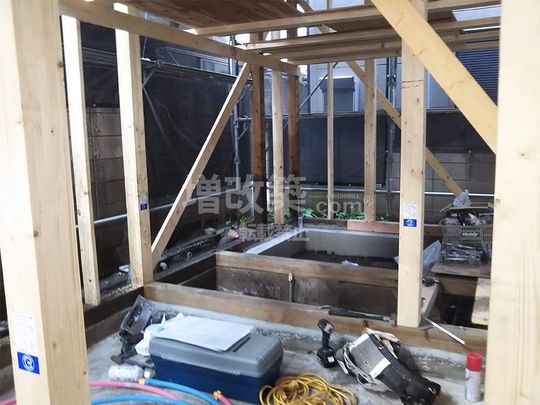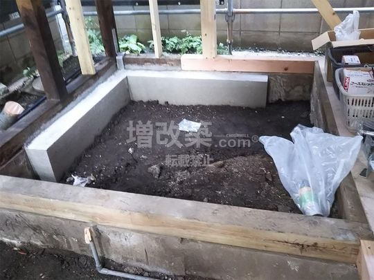 構造上のチェックが終わると、K様の二世帯住宅リフォーム(完全分離型)では、基礎補強工事へと移行していきます。