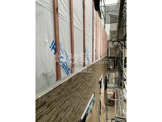 ▲今回採用される外壁サイディング材が横張りの商品となることから縦に通気胴縁を設置していきます。