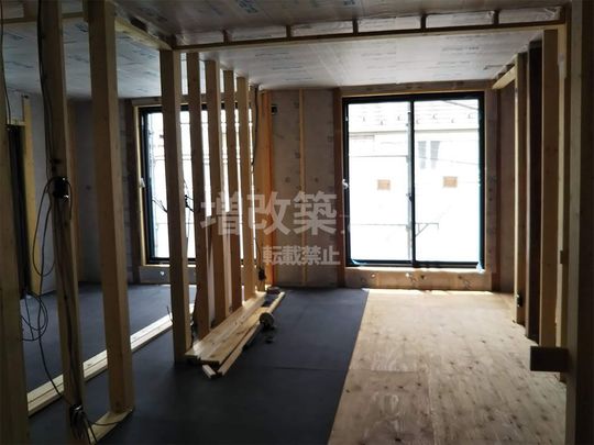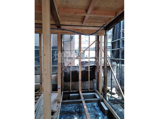 ▲補強後はLDKの間仕切り壁を作っていきます。